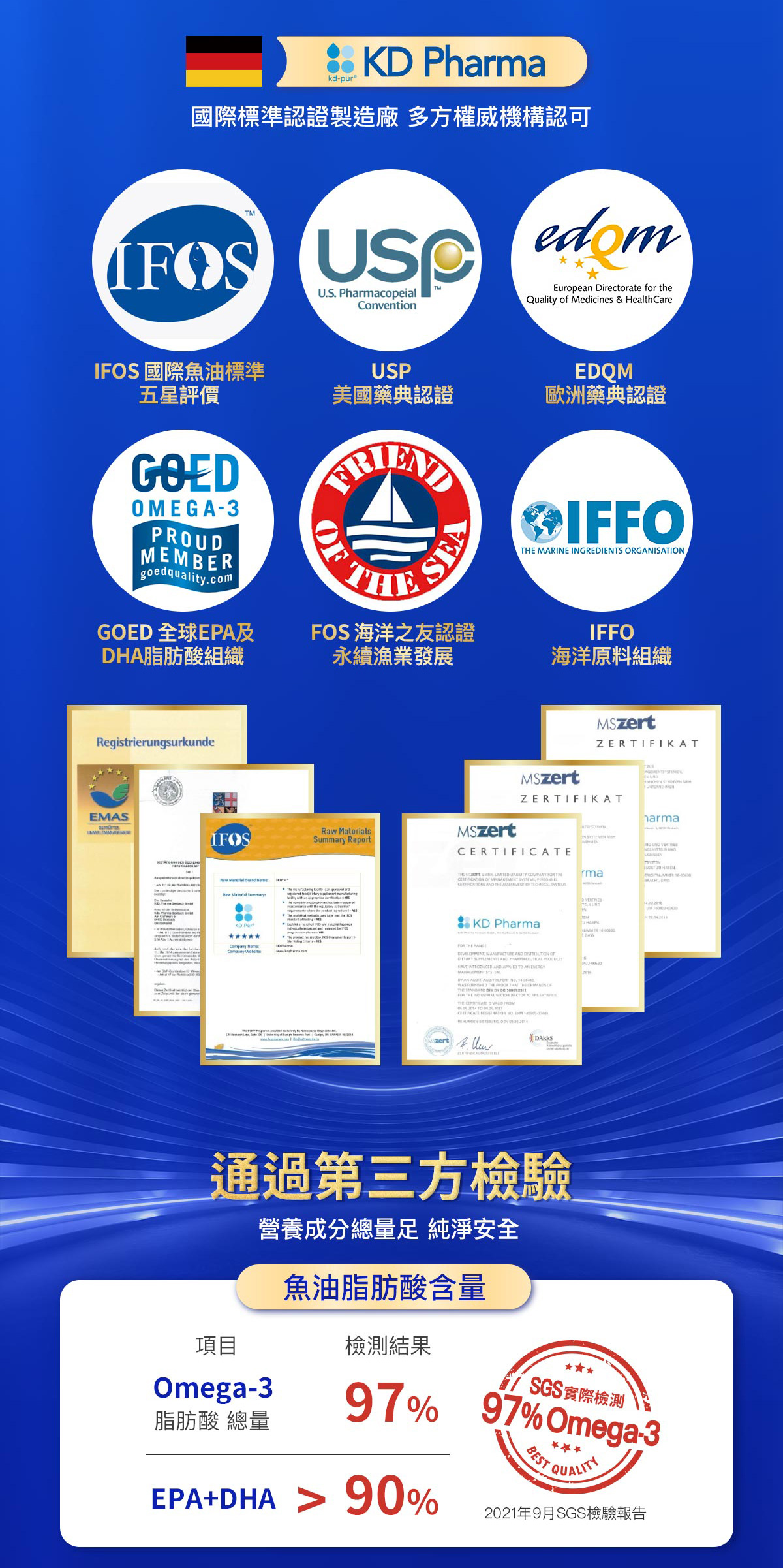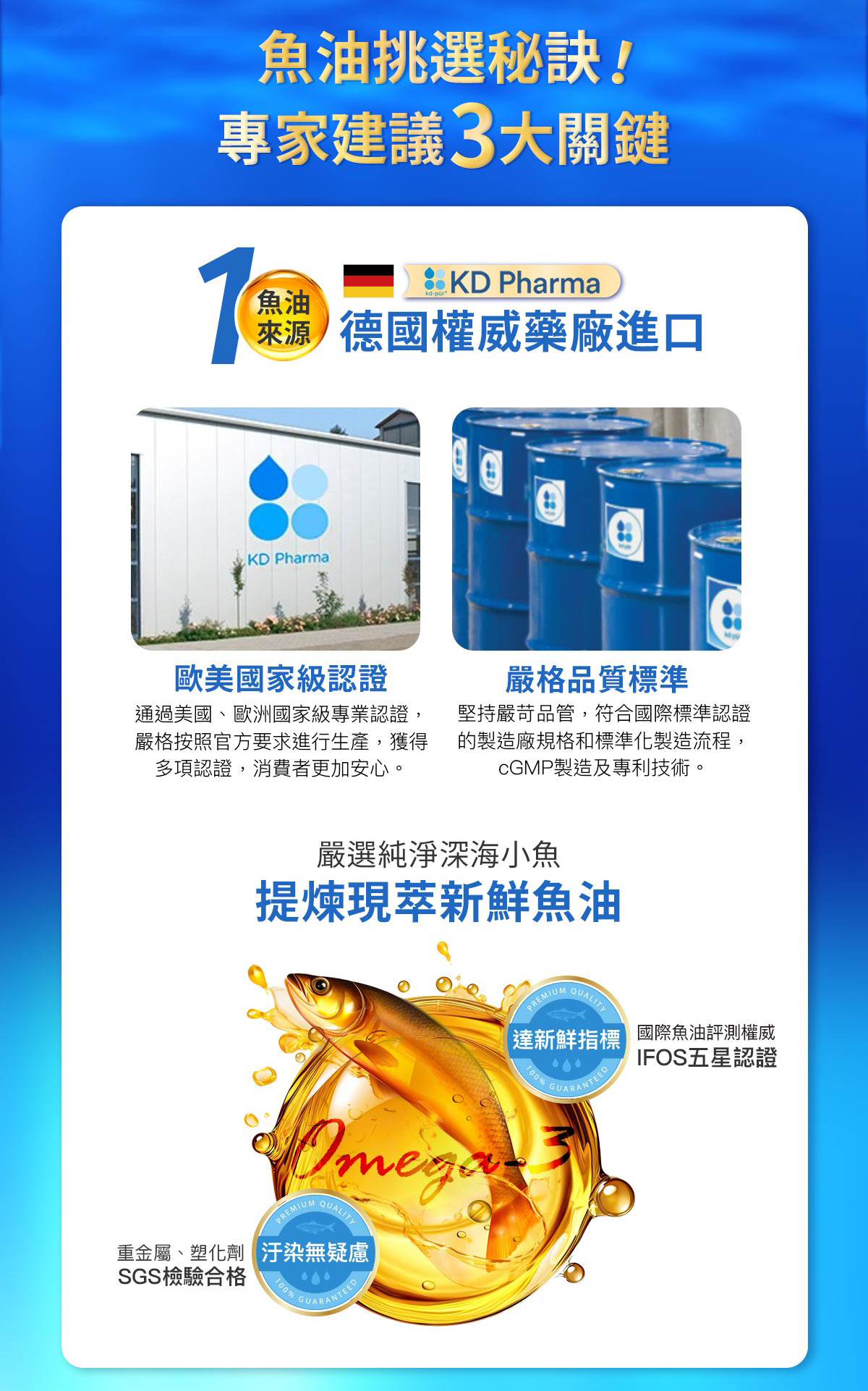 | 選自德國頂級深海小魚,榮獲IFOS國際魚油5星認證 |