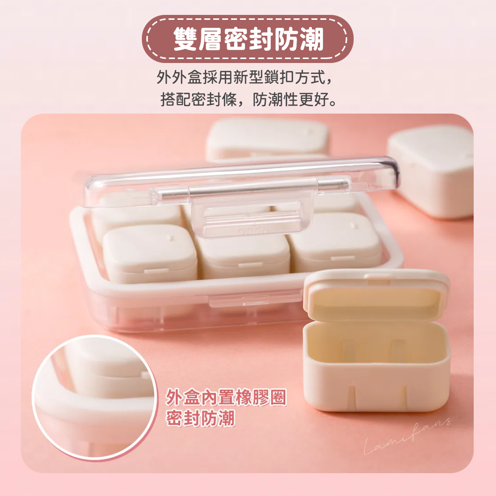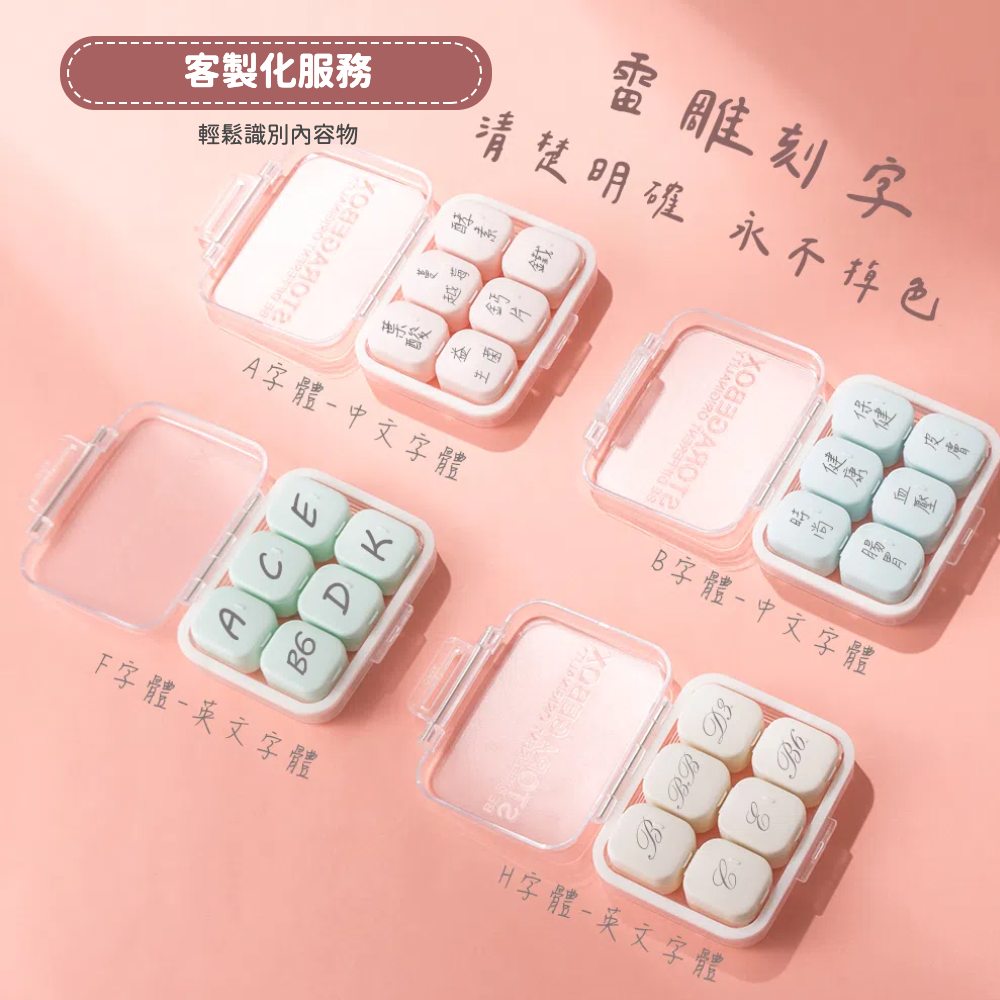 | 馬卡龍分格藥盒不僅能夠幫助您組織藥物, 外盒的密封圈還可以確保您的藥物處於最佳的保存狀態 分裝盒更提供刻字服務,清楚標示藥物,減少混淆,提高生活品質 每組分裝盒各含6個小型分裝盒+4個大型分裝盒,可依使用需求作搭配 除了照顧自己,我們的分格藥盒還是照顧家人的理想工具, 確保他們也按時服用藥物,享受健康生活 商品規格材質 : ABS、PP、PE 尺寸 : 長10x寬9x高2.8cm 重量:98g 顏色:米白色、湖水綠、天空藍、櫻花粉 內容物 : 1卡扣式密封外盒+6小格(每格分開獨立)+4大格(每格分開獨立) 產地 : 中國
